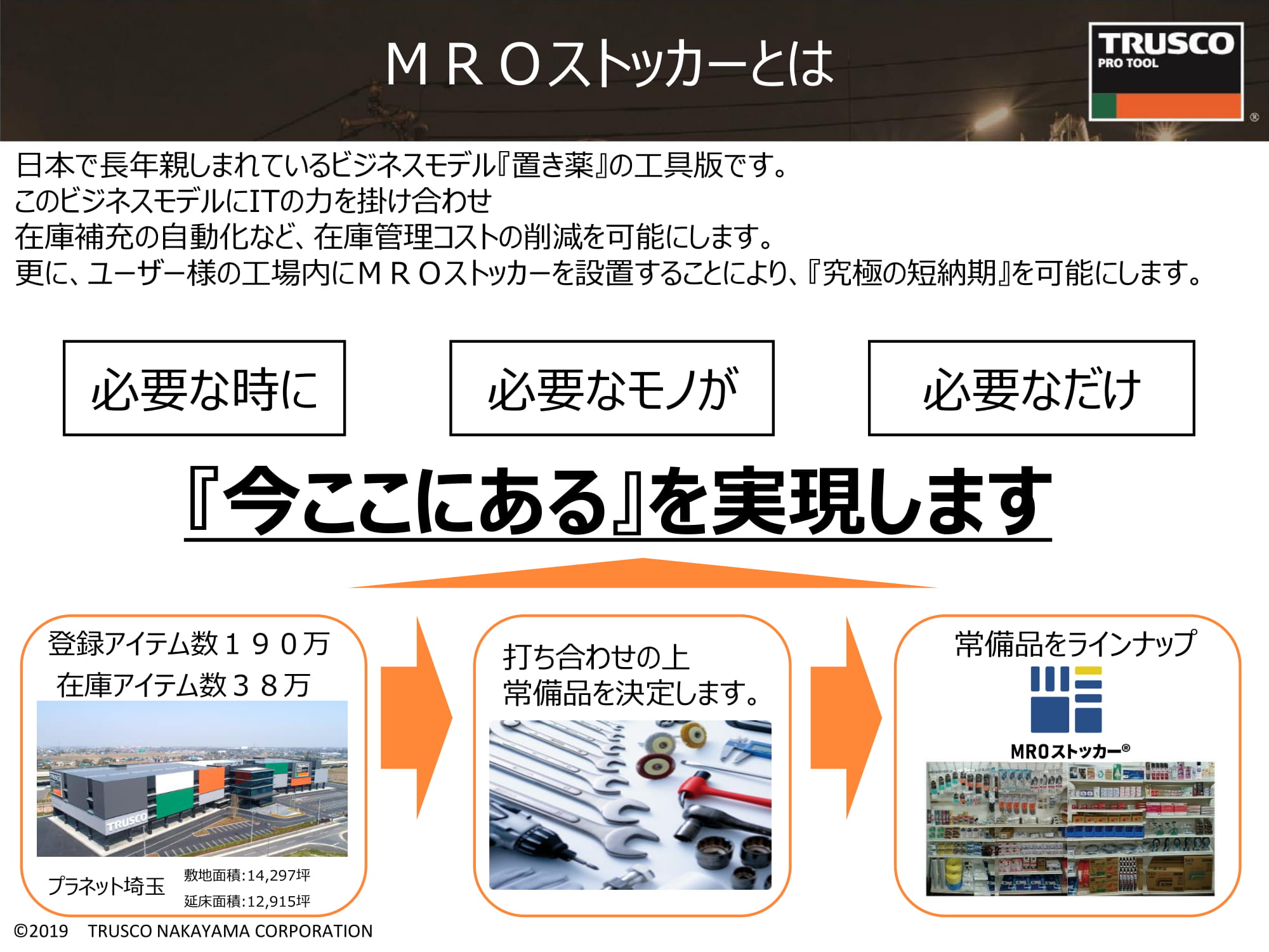 今回ご紹介する「MROストッカー」はタイトルにもあるように『置き薬』の工具版となっております。