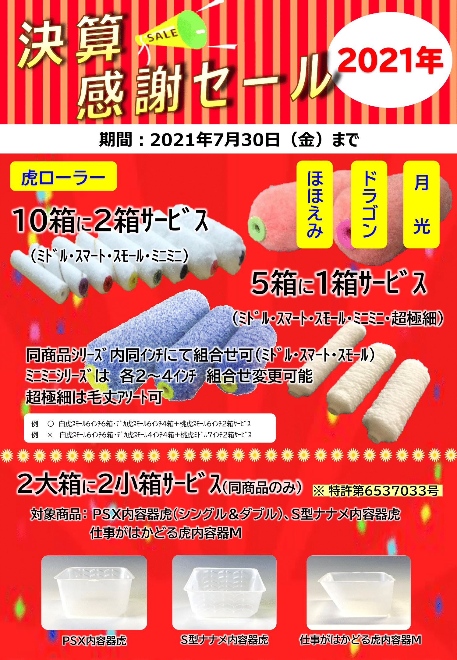 News お知らせ 重要なお知らせ 2021年6月21日(月) 太豊刷毛決算キャンペーン!! 太豊刷毛様より決算セールのご案内です。 7月30日が最終日となりますがサービス品が盛りだくさんです。 是非この機会にご利用してみてはいかがでしょうか? 次へ お知らせ一覧へ 前へ