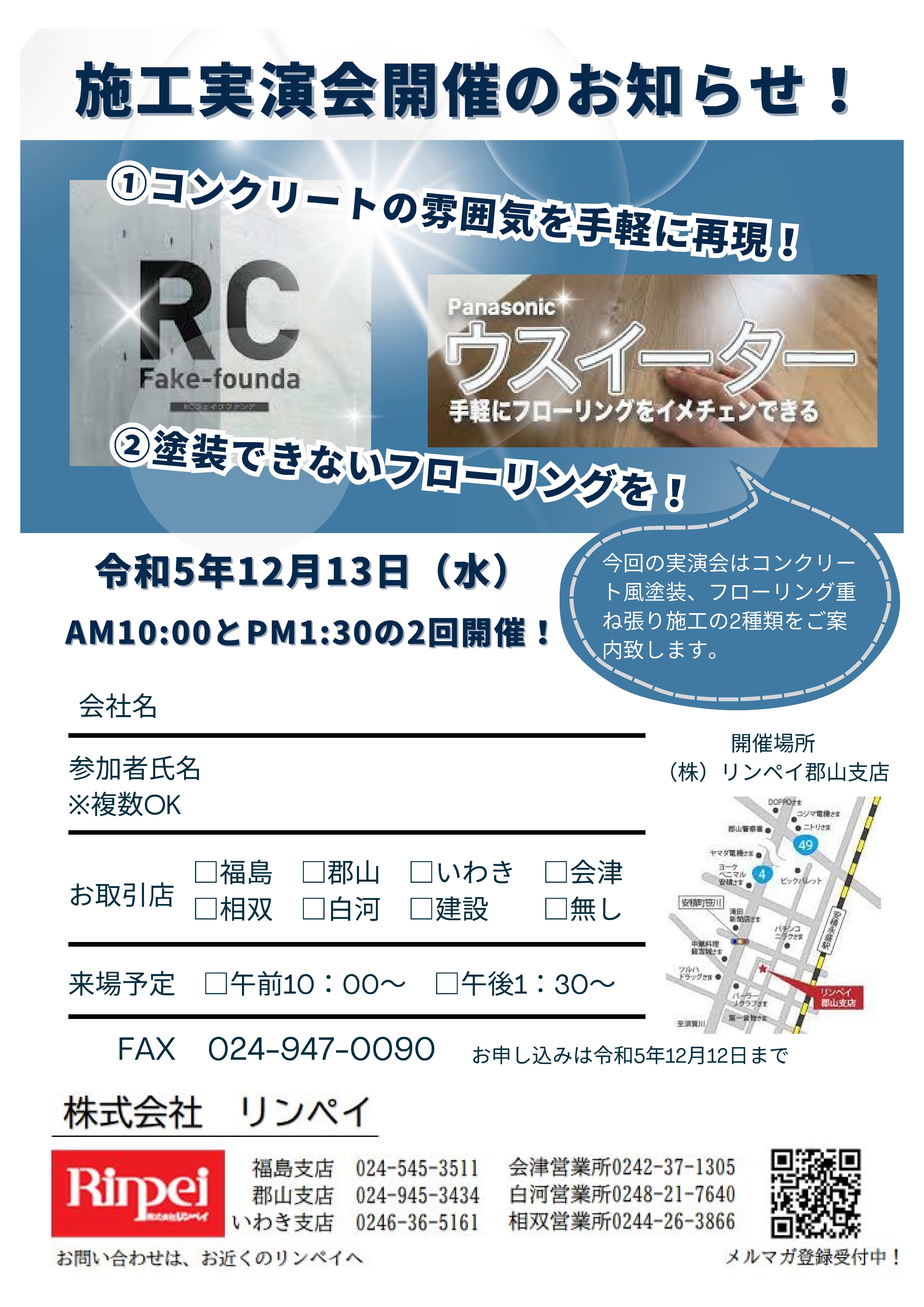 令和5年12月13日(水)に郡山支店にて施工実演会を開催致します!