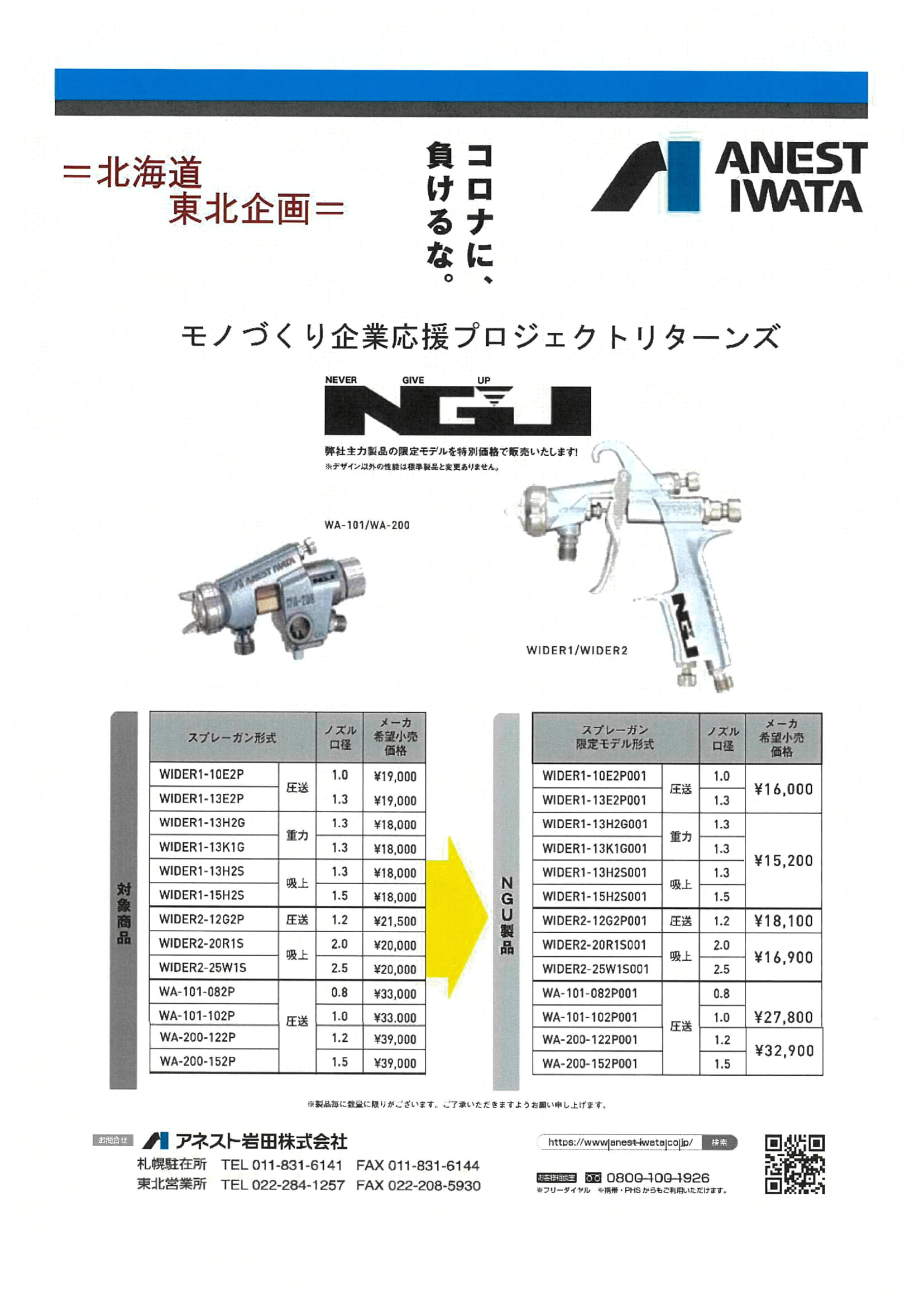 アネスト岩田(株)様のスプレーガンが、限定モデルだけでなく通常製品よりお安くなっております!